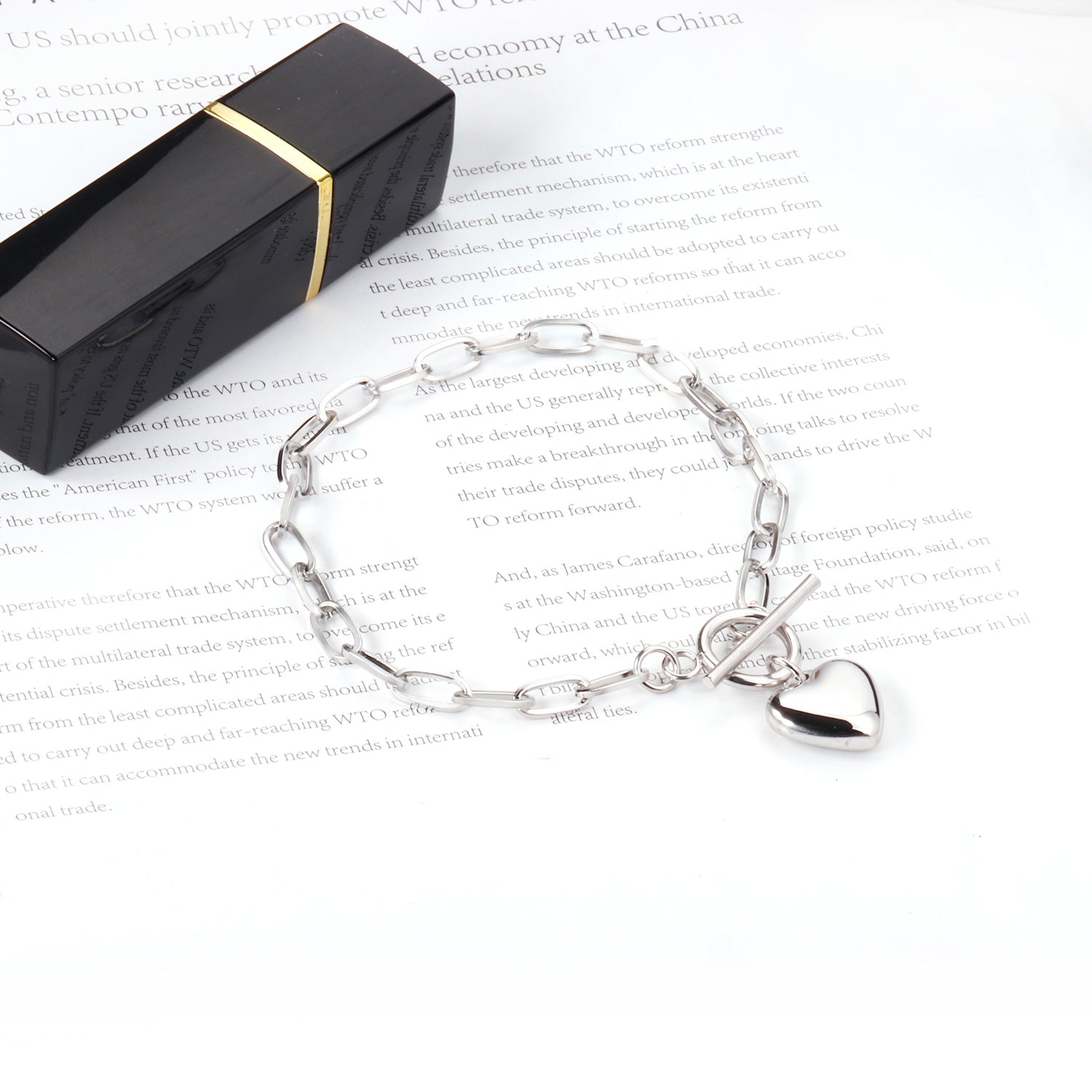• Toggle closure with heart-shaped charm