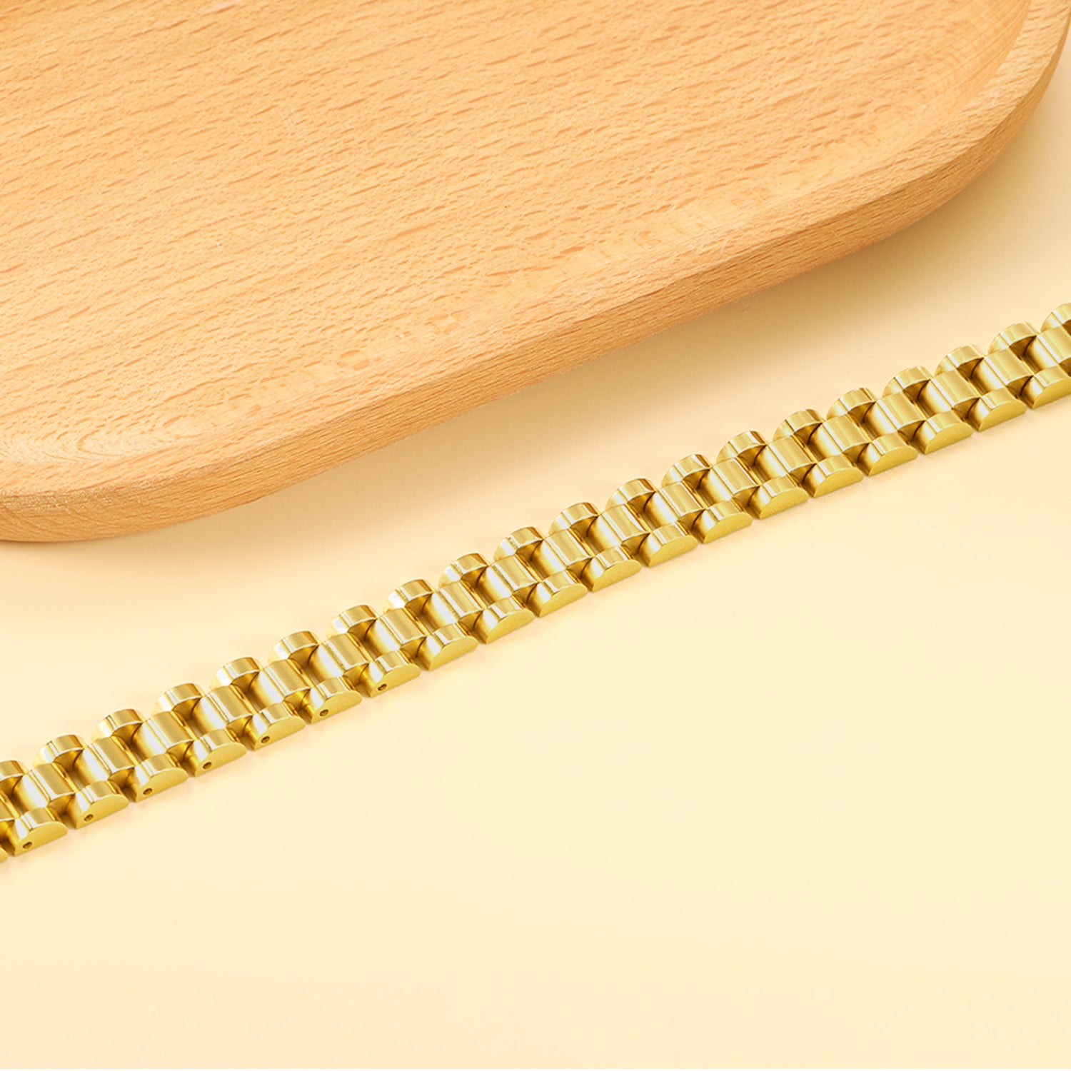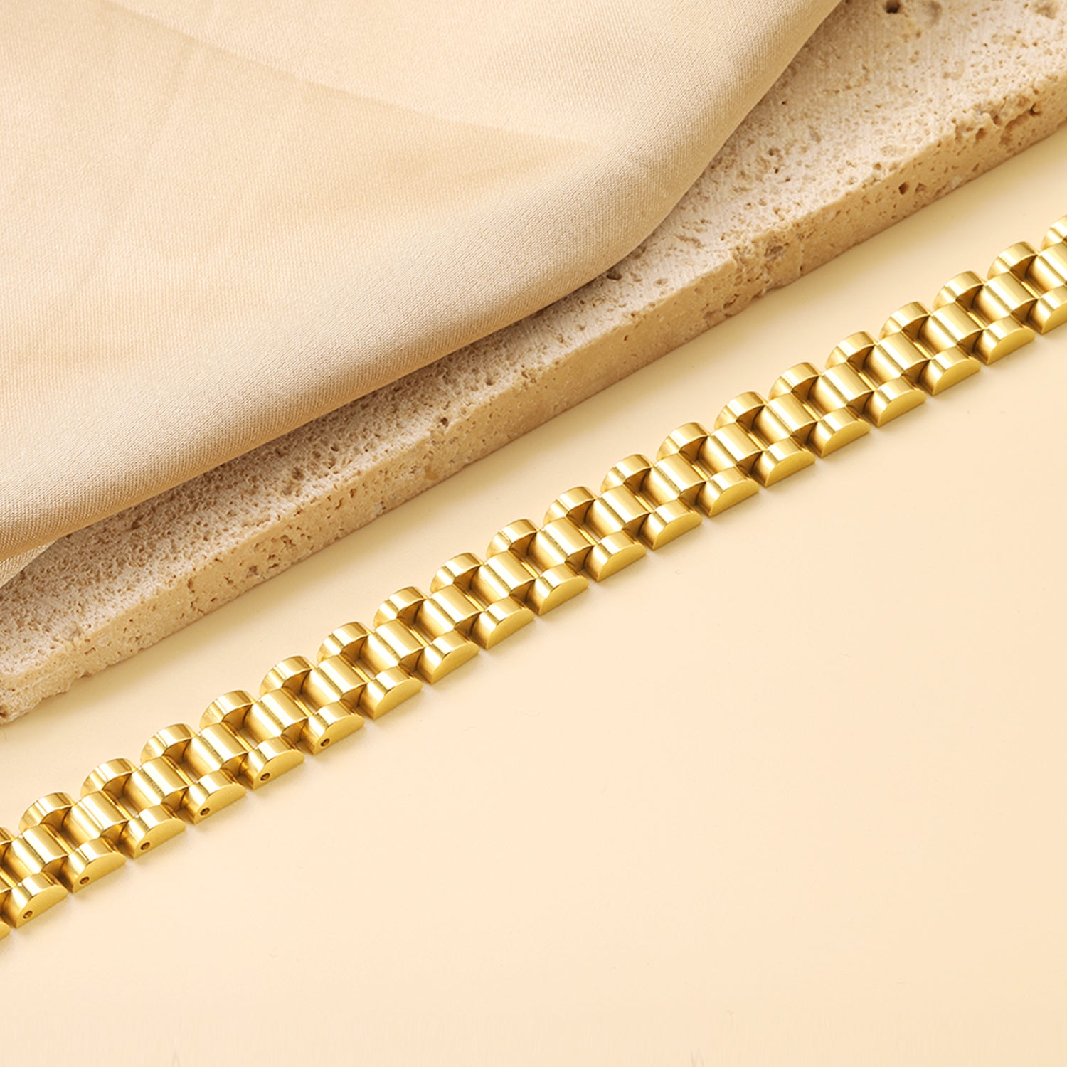 The Stack Link bracelet is a contemporary twist on a classic chain design — chunky, polished links in either radiant gold or sleek silver. Made from stainless steel and finished in long-lasting 18k PVD plating, it's your new go-to for elevating streetwear or stacking with finesse.